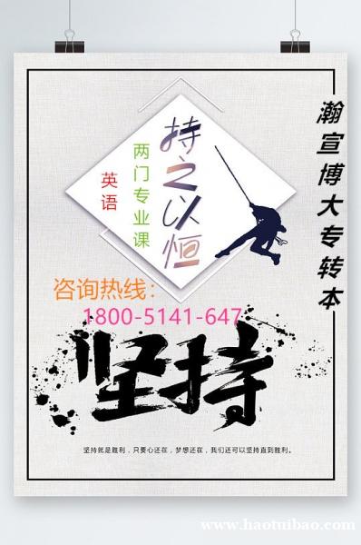 江苏瀚宣博大专转本B学已有十余年,是一家主做五年制专转本的教育培训J构,汇集了众多转本经验丰富的名师,以及人性化、个性化的教学方法,凭借内部辅导教材、丰富的转本培训经验,每年帮助众多学Z成功转本。辅导英语和各主考院校所有专业课,小班化教学、线下面授、线上培训相结合,循环滚动开课,可以随到随学,一对一配置,针对性强。还提供专业咨询、院校介绍、志愿填报、英语辅导、专业课教学、统一报名、集体送考等服务,让考生对五年制专转本的了解更加深入,更加有方向和针对性。更多转本详情联系1800微5141同647严老师,预约试听课程并领取招生简章一份。