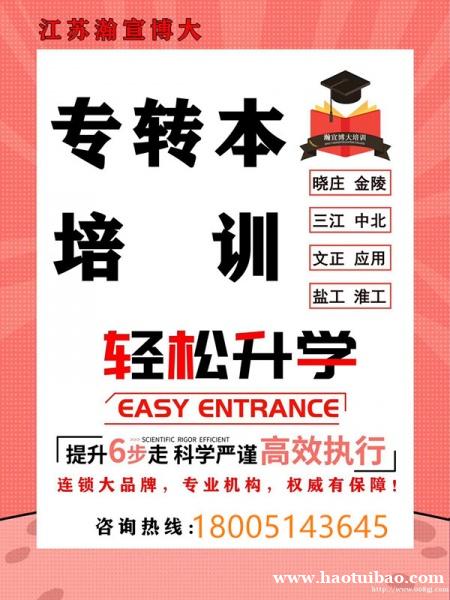 目前江苏瀚宣博大五年制专转本正在火热招生中,在南京、徐州、镇江、南通、苏州、常州、无锡、昆山等多地均设有校区可穿插上课,如老家是徐州但在南京上学的考生可以平时周末在南京校区上课,寒暑在徐州校区上课,详情可联系姚老师。