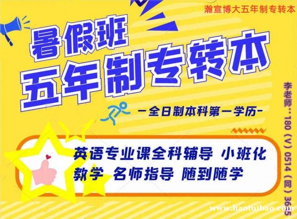 五年一贯制专转本培训辅导到瀚宣博大,它是江苏省一家专业化、系统化、规模化、规模化主做五年制专转本(五年一贯制专转本)培训辅导学校,不仅辅导统考科目英语,更辅导主考院校所有专业考试科目,面试科目有专业的老师交流应试技巧并重点指导。然后按考生的不同基础情况提供五年一贯制专转本专业咨询、主考院校专业详细介绍、统考科目英语考试重点、专业课考纲提供、统一报名、送考、志愿填报指导等服务,让考生备考的信心更足,针对性更强,通过率更高,更多五年制专转本备考详情联系李老师180(微)0514(同)3645,可领取招生简章和预约试听课。
