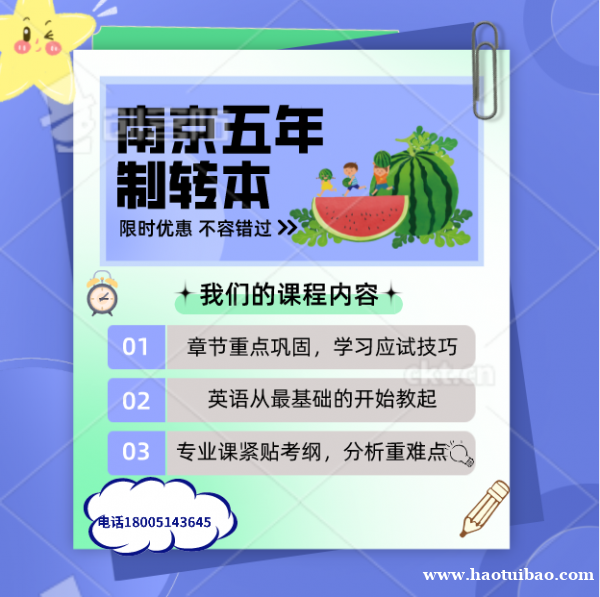 同学们一旦决定专转本,就应该好好努力备考,当有一天你考上了本科,你就会发现转本的过程本身就是很难得的人生体验过程。这个世界是公平的,学习如逆水行舟,不进则退。专转本只有一次机会,同学们一定要好好把握,快人一步做好计划安排! 联系我时,请说是在好推宝看到的,谢谢!