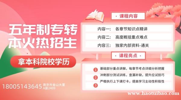 江苏瀚宣博大专转本学校是专门从事五年制专转本英语和各招生院校所有专业课辅导的培训机构,十余年的教学辅导经验,师资力量雄厚。英语针对词汇,语法,句子结构,阅读,写作等多个模块重点辅导,先提升基础再提优拔高,后期冲刺刷题,根据历年英语真ti卷、模·拟卷、押ti卷等提升应试技巧、提高解题速度,还会根据学员薄弱项进行针对性查漏补缺,从而提高同学们的英语学习能力与成绩。专业课是辅导晓庄学院所有专业课和各大主考院校所有专业,根据各院校各专业考纲教学,还编著针对性复习资料,涵盖考试重点、难点;每个学习阶段还开展摸底测试,根据学员的学习情况调整教学计划和复`习`进`度。更多五年制专转本详情联系瀚宣博大李老师领取招生简章180(微)0514(同)3645预约试听课程!